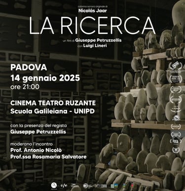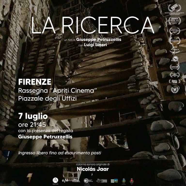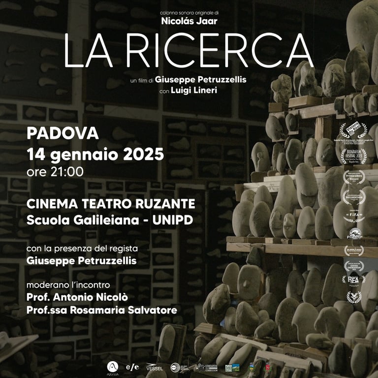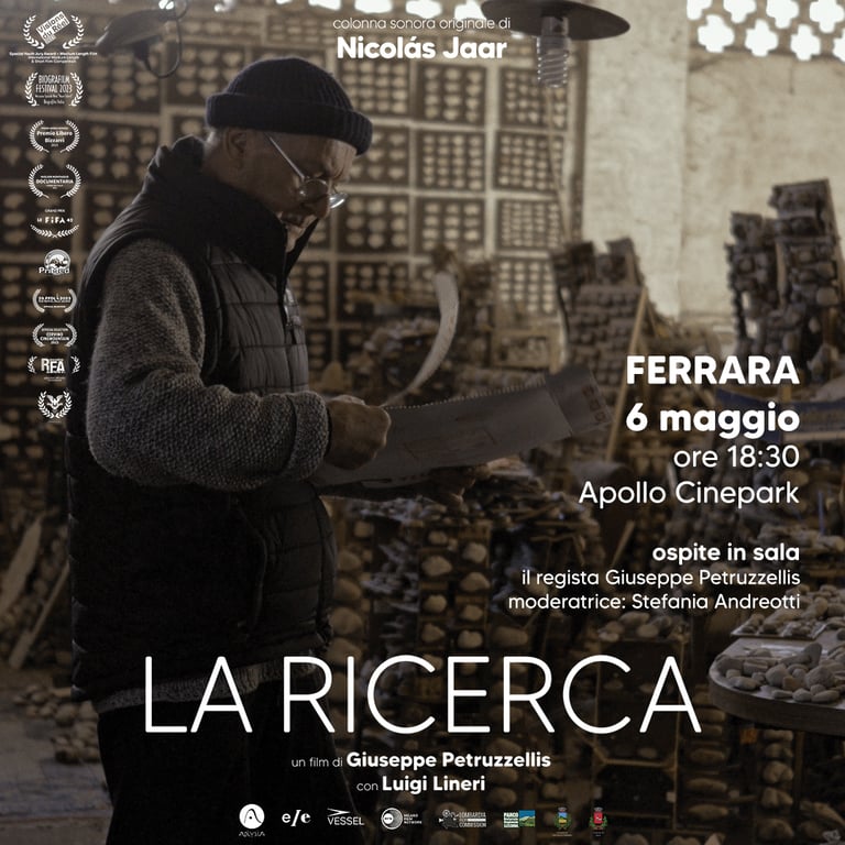 Per 60 anni Luigi Lineri ha meticolosamente assemblato "La Ricerca", una gigantesca collezione di sassi trovati lungo il fiume Adige e sulle montagne del veronese. Ciottoli dalle forme umane e animali, reminiscenti di enigmatiche sculture preistoriche, diventano una lente per scrutare nelle profondità della natura umana. Tra immagini mitologiche e riflessioni ecologiche, l’installazione di Lineri rende omaggio alle fatiche dei primi esseri umani e si interroga sull'evoluzione della nostra specie. “La Ricerca” offre un’inedita prospettiva sul nostro cammino collettivo ed è un manifesto di speranza per il futuro. L’opera prima di Giuseppe Petruzzellis, è impreziosita dalla colonna sonora originale del compositore di fama mondiale Nicolás Jaar.